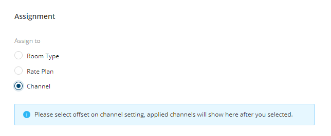 - You will see a pop up message "Please select offset on channel setting, applied channels will show here after your selected"