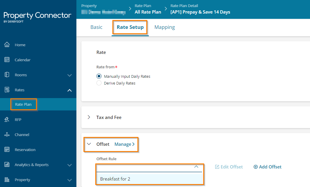 3.3 Alternatively, you can manage Rate Plan Offset directly from Rate Plan setup.