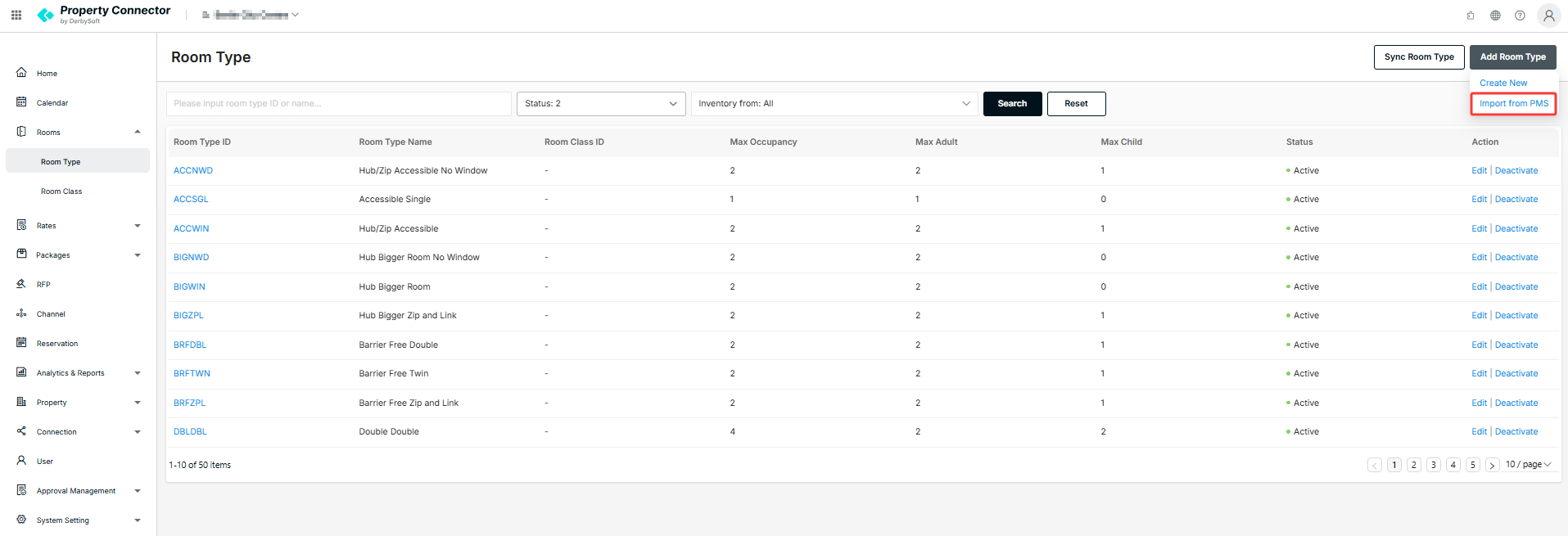 - Add import from PMS button and Sync Room Type button for Opera Cloud Distribution API integration properties to support creating or updating room type through the interface.