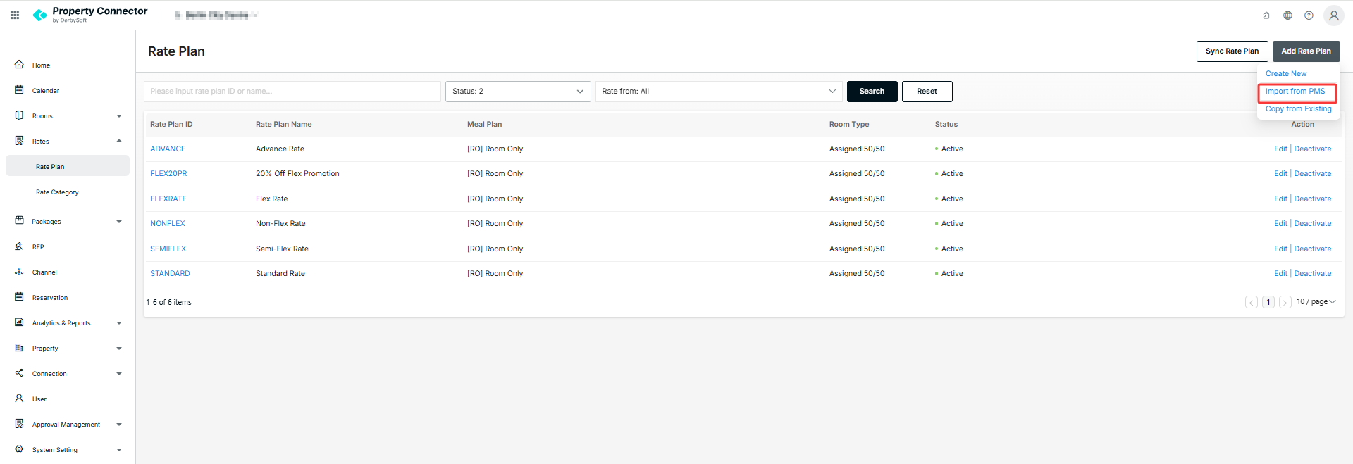 - Add import from PMS button and Sync Rate Plan button for Opera Cloud Distribution API integration properties to support creating or updating rate plan and room-rate combination through interface.