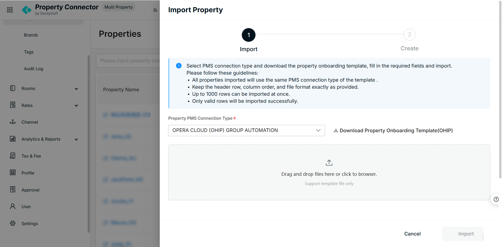 - PMS Compatibility: Currently, the system only supports bulk imports for Opera Cloud (OHIP) and Oracle Cloud (Distribution) PMS connections.