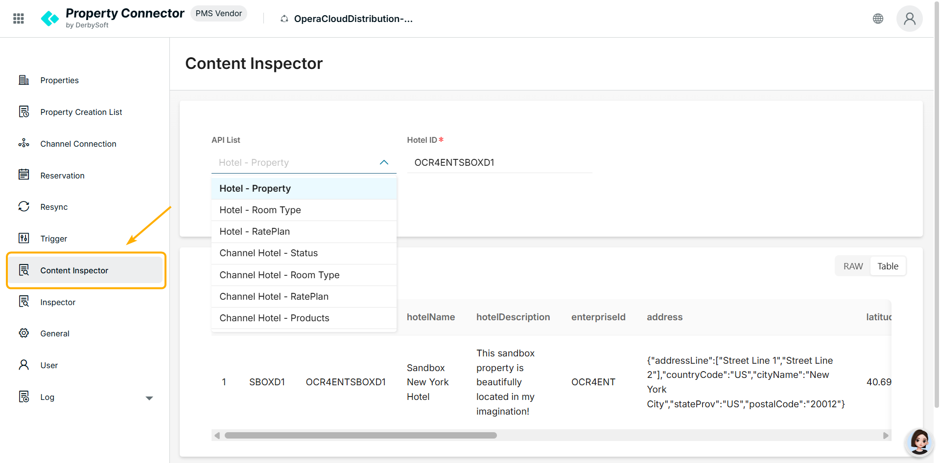- A new Content Inspector section has been added to the PC-PMS portal for Opera Cloud Distrbution White Label Project. This section provides real-time visibility of API payloads, which significantly reduces troubleshooting time and communication costs when hotel creation fails.