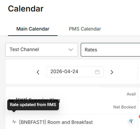 In the Main Calendar, you can see an icon indicating that 'Rate updated from RMS'