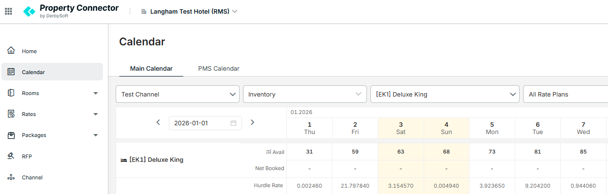 Once your RMS set up is completed and Property Connector received the successful processed LRV messages from IDeaS, hotel team is able to validate the value in the Property Connector Calendar.