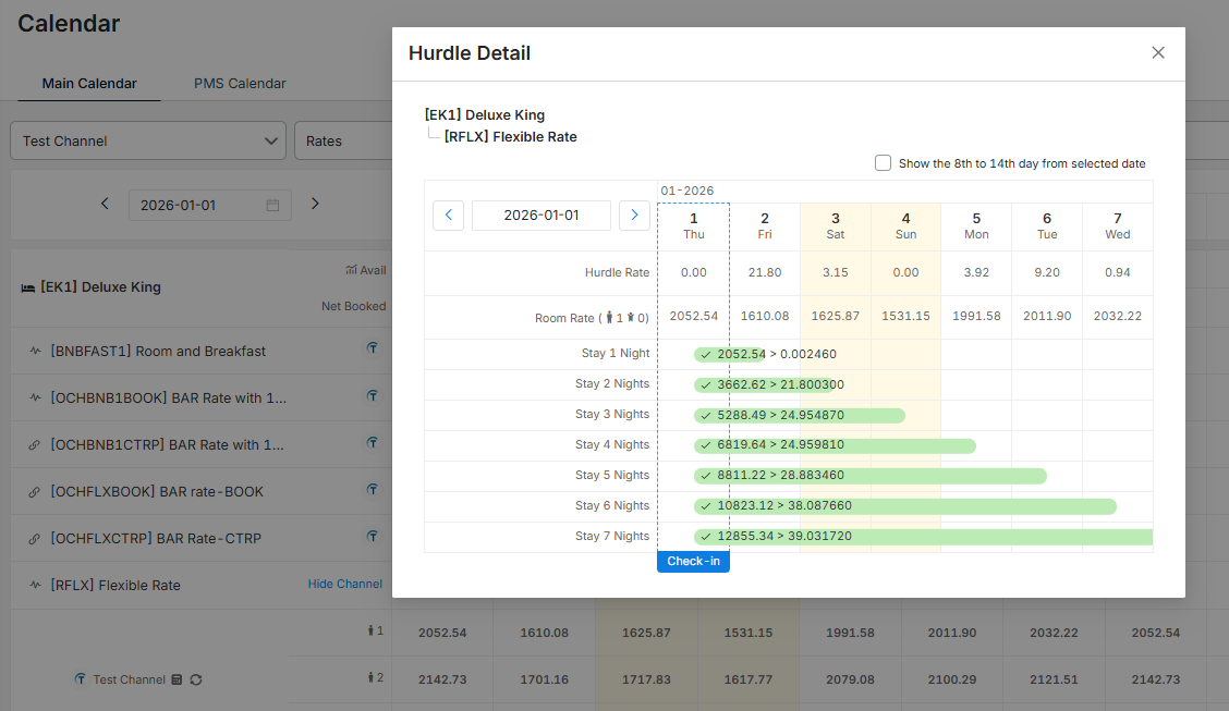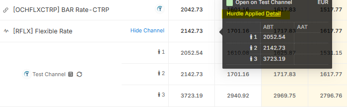 2.) Main Calendar > Rates > Expand the channel icon > Hover the rates > Hurdle Applied